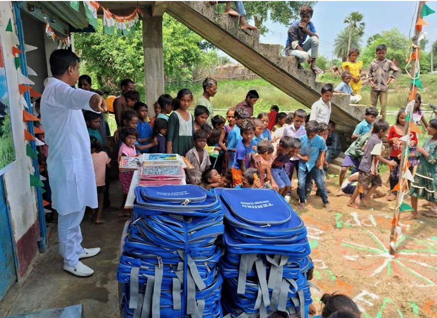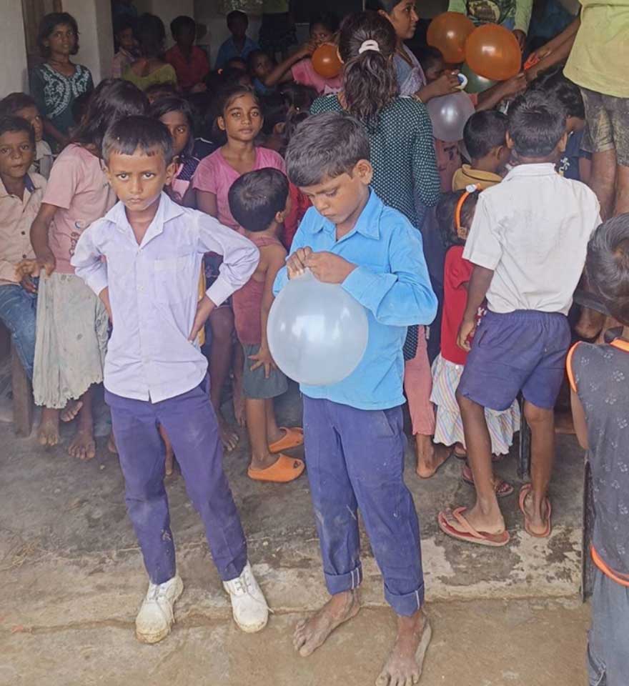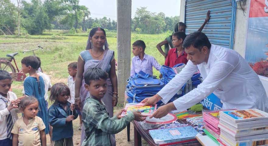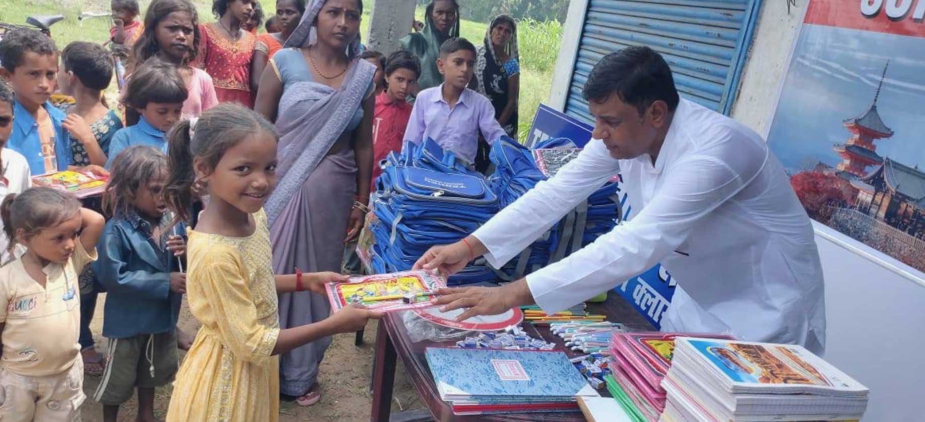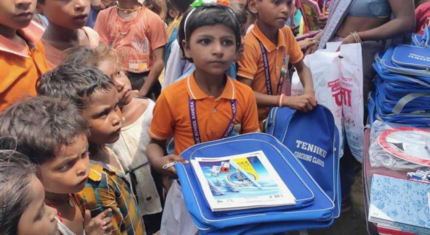 インドでは、地方によっては子どもたちが通える学校がありませんが、水汲みという、きつい労働から開放された子どもたちのために、学びの機会が得られるよう無償の私塾を開き、そこで必要な文房具などを寄付しています。